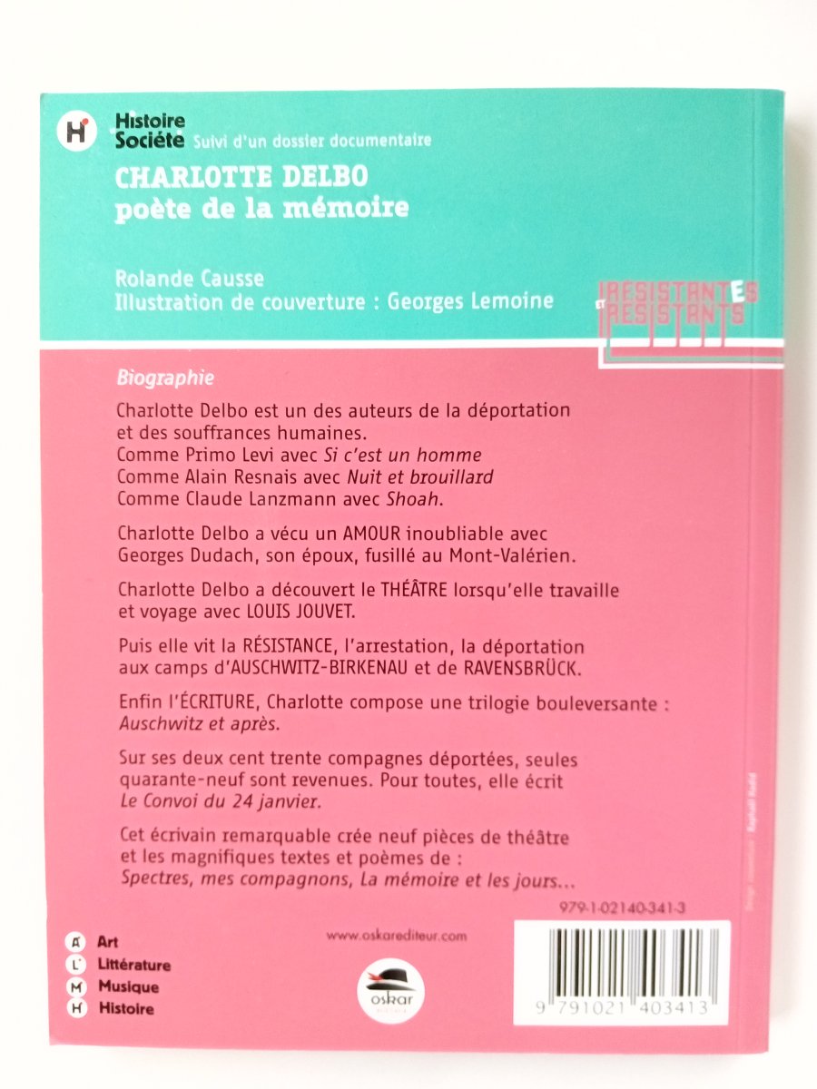 • Rolande CAUSSE, Charlotte Delbo, poète de la Mémoire, Oskar Editeur, Collection Histoire et société, 2015, 200 pages.