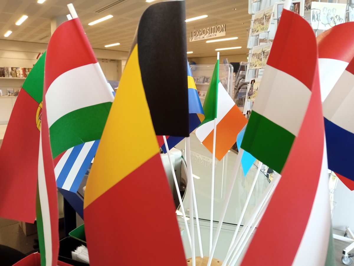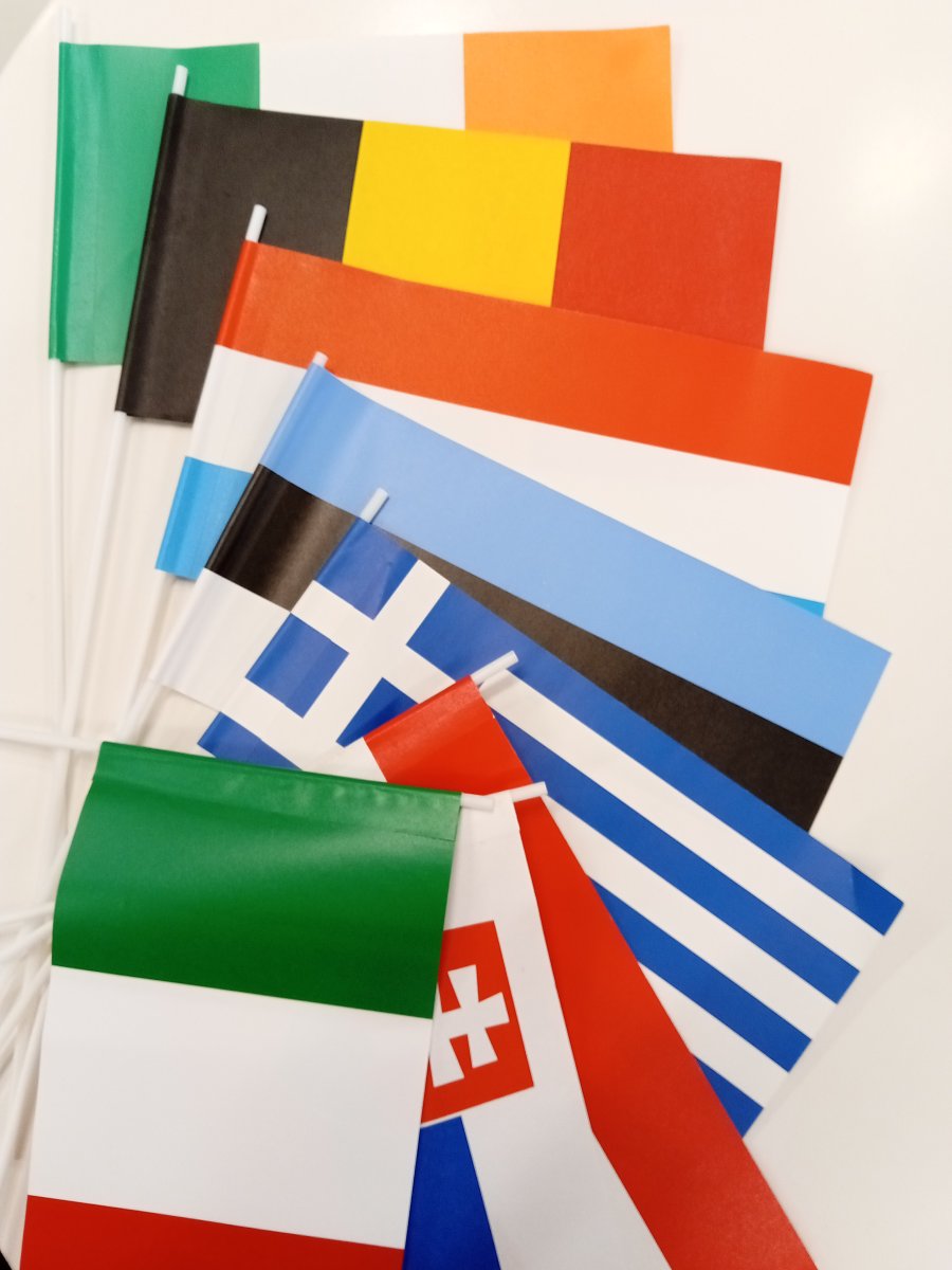 • Drapeaux des 27 pays de l’Union européenne (Allemagne, Autriche, Belgique, Bulgarie, Chypre, Croatie, Danemark, Espagne, Estonie, Finlande, France, Grèce, Hongrie, Irlande, Italie, Lettonie, Lituanie, Luxembourg, Malte, Pays-Bas, Pologne, Portugal, Roumanie, Slovaquie, Slovénie, Suède, Tchéquie).