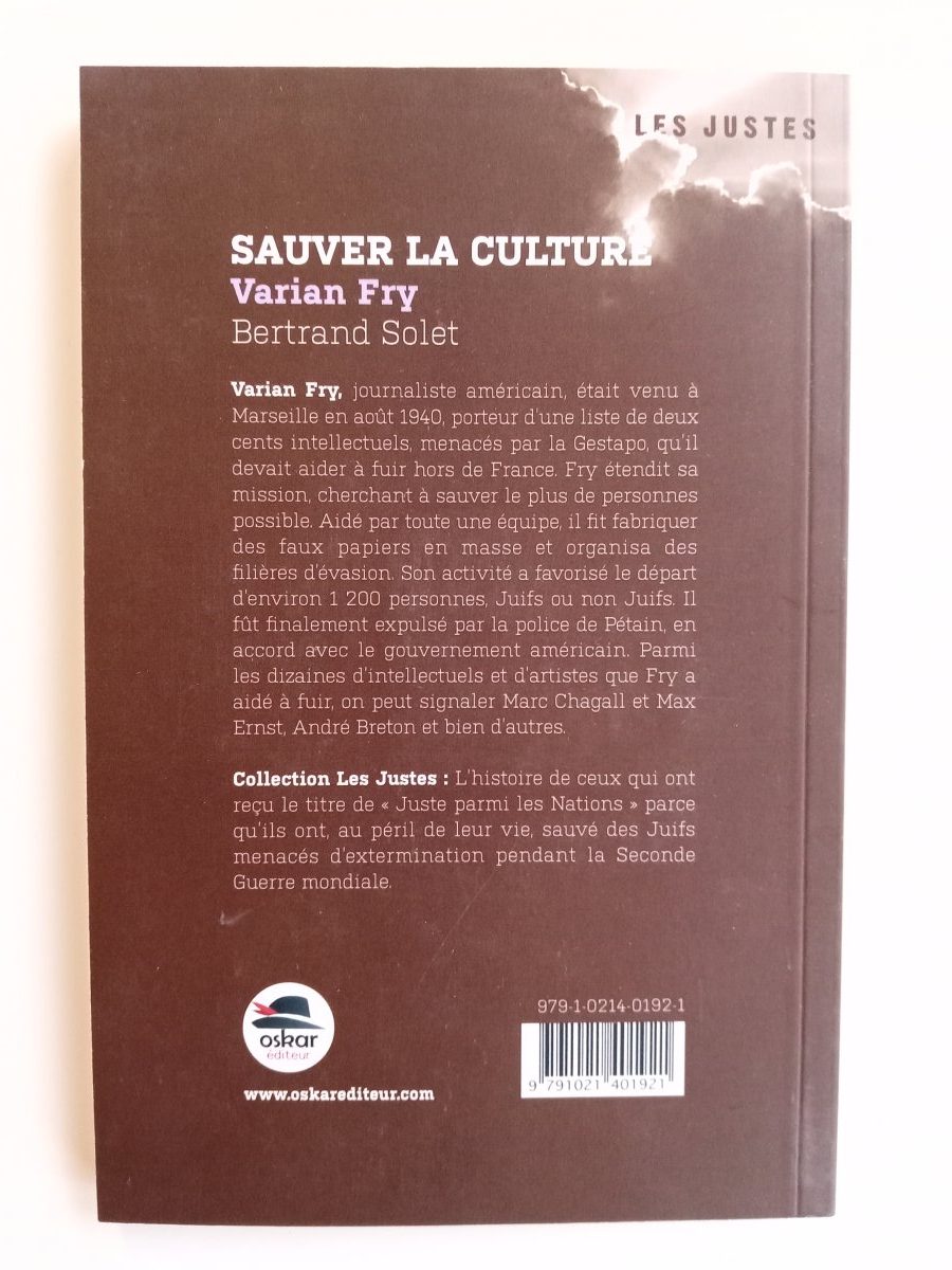 • Bertrand SOLET, Varian Fry – Sauver la culture, Oskar Editeur, Collection Les Justes, 2014, 95 pages.